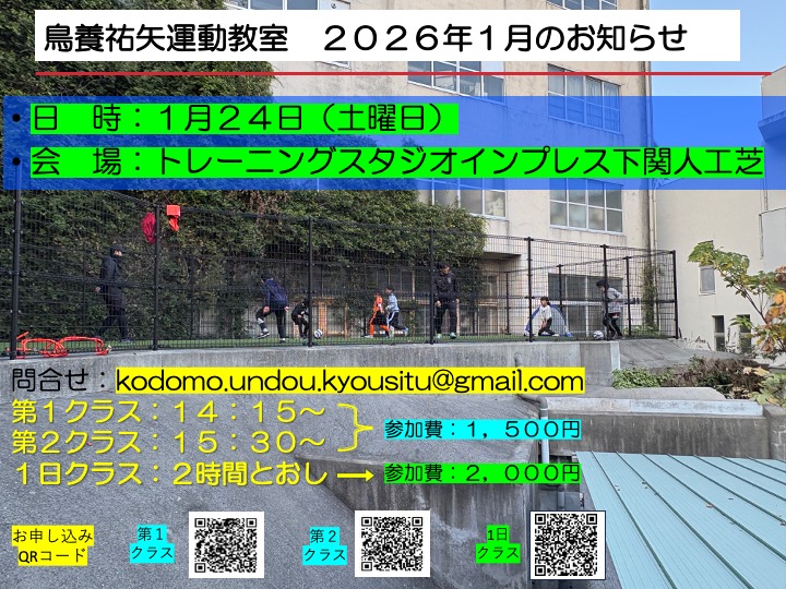 鳥養祐矢運動教室の2026年1月のお知らせ